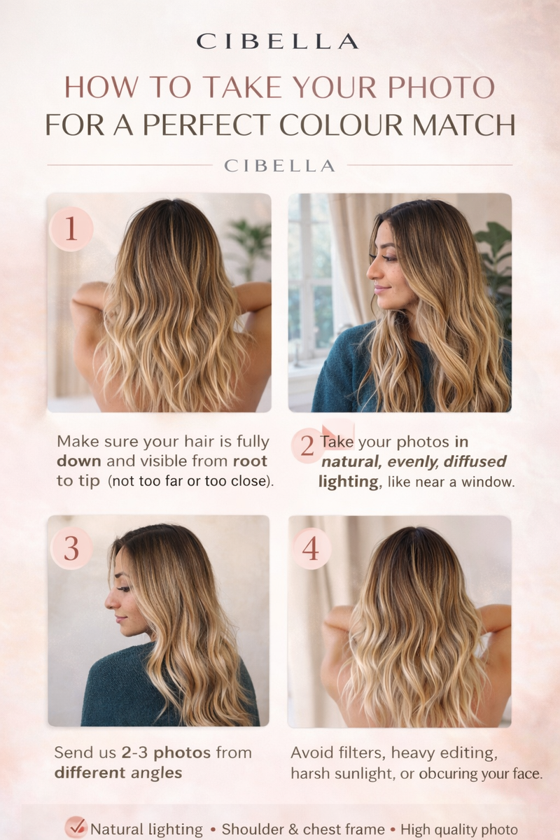 Send us a photo of your hair for a personalised colour match consultation. Our experts will help you find the perfect shade for seamless, natural-looking extensions.
